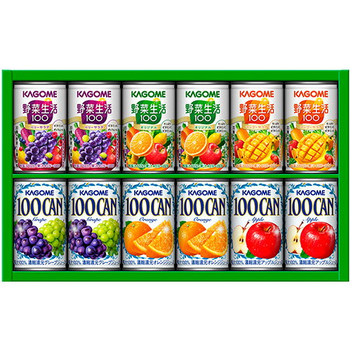 ●箱サイズ/5.9×20×34.1cm●商品内容/100CAN アップル 160g×2、100CAN オレンジ 160g×2、100CAN グレープ 160g×2、野菜生活100 オリジナル 160g×2、野菜生活100 ベリーサラダ 160g×2、野菜生活100 マンゴーサラダ 160g×2100%ジュースのベストセラー「KAGOME100CAN」と野菜&フルーツのおいしさが人気の「野菜生活100」の詰め合わせです。