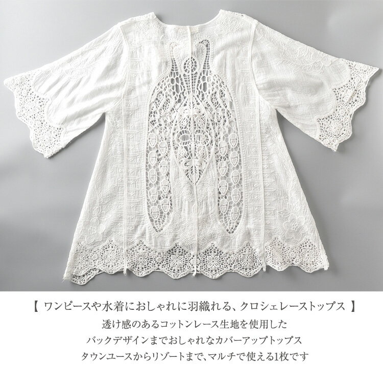 【ネコポスOK】トップス ブラウス カバーアップ 水着の上 羽織り プルオーバー コットンレース 20代 30代 40代 50代 フリーサイズ S M L